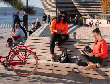 Summer days on the boardwalk at Havnparken in Copenhagen