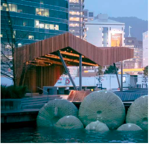 Kumutoto Shelter and sculpture in Wellington