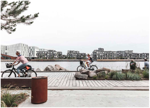 Natural materials along Sandkaj Promenade in Copenhagen