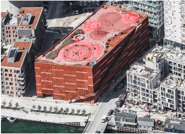 Fitness and play on a parking structure roof in Copenhagen