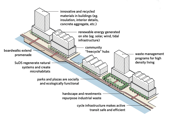 - Connecting multiple urban neighbourhoods with the waterfront promenade