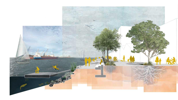 Buildings play a crucial role in defining the waterfront promenade, and therefore must be activated, proportional and welcoming. Structures affect both the human experience of a place and the immediate microclimate. Wind and deep shadows should be mitigated and building shoulders can be used to create the illusion of a lower roofline such that the promenade is both physically and subconsciously welcoming.